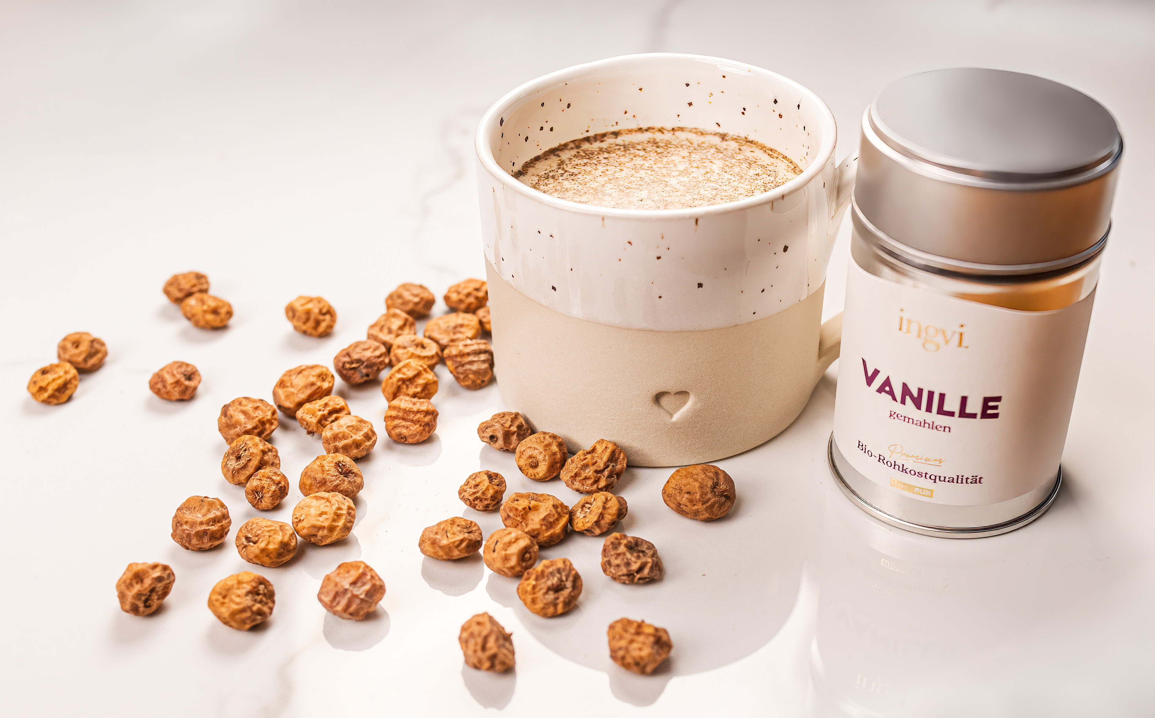 Frische Erdmandeln getrocknetin Rohkostqualitätfür leckere Erdmandelmilch und weiterverarbeitet im Müsli / Backen / Panieren / AndickenBis zu 26 % natürliches FettUnglaublich viel KaliumNatürlich süß mit 0% ZuckerFür die gute Verdauung mit BallaststoffenAufgrund des hohen Sättigungswertes, eignet sich die Erdmandel auch bei kalorienreduzierter Ernährung.Sie sind haselnussgroß und schmecken ähnlich wie Mandelkerne, jedoch süßerDie ballaststoffreiche Erdmandel mit über 30 % Ballaststoffen, welche die Darmtätigkeit unterstützen, enthält sie auch wertvolle ungesättigte Fettsäuren (21,5 %), Eiweiß (8,7 %), Magnesium und Vitamin EVeganRohkostLaktosefreiGlutenfreiKeimfähigFair gehandeltSozialzertifiziert